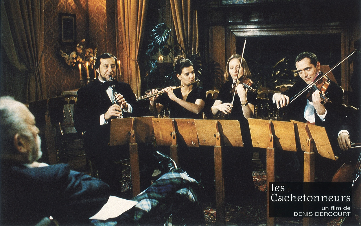 Six cachetonneurs, des musiciens qui vivent du cachet, se retrouvent dans un château en Normandie pour préparer un concert du Nouvel An. Mais l'équipe réunie par Roberto, le contrebassiste qui a trouvé l'affaire, n'est pas exactement celle qui était prévue au départ. Seul le violoncelliste Lionel, cachetonneur impénitent, a répondu présent. A contre-coeur, Roberto a dû faire appel à Martial, altiste maniant mieux le verbe que l'archet, et à la flûtiste Thérèse, dont l'accouchement paraît pourtant imminent. La violoniste Diana est une élève du Conservatoire qui participe pour la première fois à ce genre de concert. Quant au clarinettiste, personne ne le connaît: il a été imposé par le châtelain, un vieux mélomane que sa surdité empêche de rien entendre sauf la musique. Avant la prestation finale, l'équipe doit se rôder lors d'un concert de charité dans l'église du village, puis assurer une animation dans une école. Mais le prestigieux chef d'orchestre Swarovski, qui doit venir d'Autriche pour les diriger, tarde à arriver.